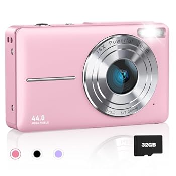 Digital Camera 4K 44MP Compact Camera with 16X Digital Zoom, Auto-Focus Kids Point and Shoot Digital Camera with 32GB SD Card, Portable Camera for Teens Kids Boys Girls