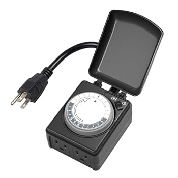 BN-LINK Compact Outdoor Mechanical 24 Hour Programmable Dual Outlet Timer - Plugin timer, Waterproof, Heavy Duty