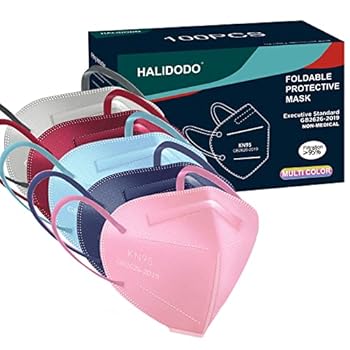 HALIDODO 100 Packs Individually Wrapped KN95 Face Mask 5-Ply Breathable & Comfortable Filter Safety Mask with Elastic Ear loop and Nose Bridge Clip, Protective Face Cover Mask, Multi Color